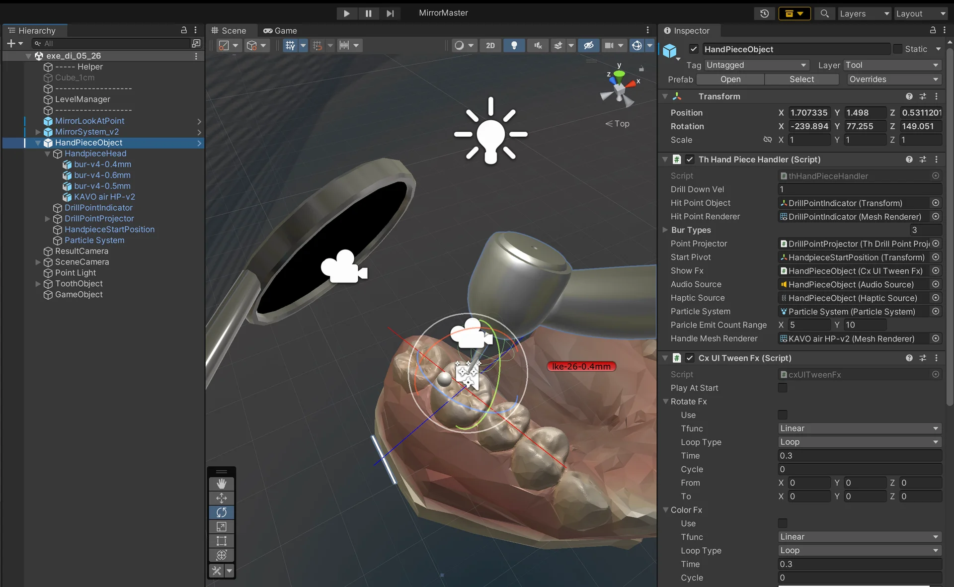 However, I wanted to take it further and incorporate more realistic scenarios. This led me to the FPS game control system. We started with a virtual mirror in a 3D environment, displaying real-time reflections and allowing real-time control of the mirror and handpiece. This was the foundation of Dental MirrorMaster as you know it today.