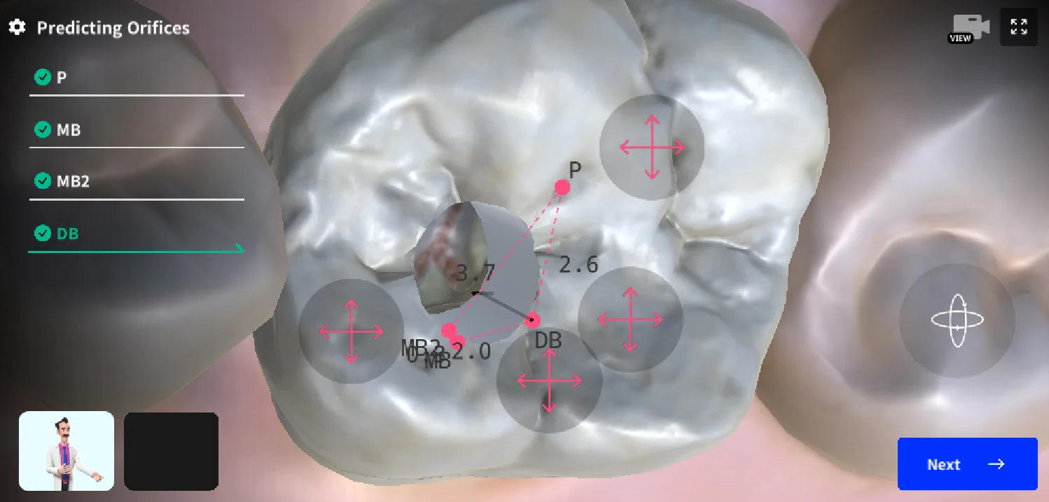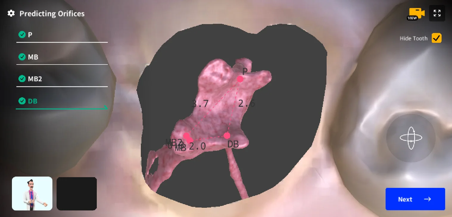 In each stage, the app’s secondary view visualizes what’s happening inside the tooth during endodontic procedures, offering a clearer understanding of the entire process. This feature helps users anticipate and handle various challenges during actual treatments.