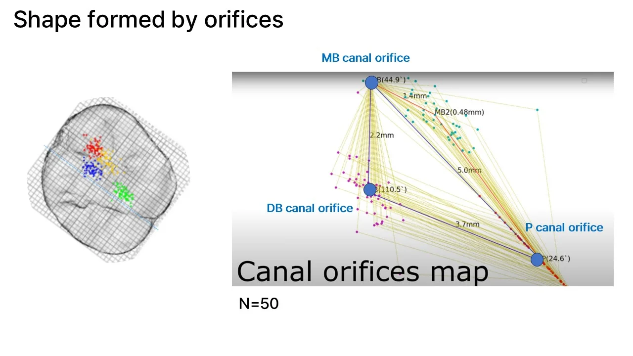 However, applying these skills clinically was more challenging than expected. Specifically, accurately identifying the exact location and shape of the canals in each tooth is very difficult. For example, the advice often available with upper molars was experiential, like accessing toward the largest canal from the center of the occlusal surface, the palatal canal. This kind of ambiguous information made it hard to perform successful root canal treatments.