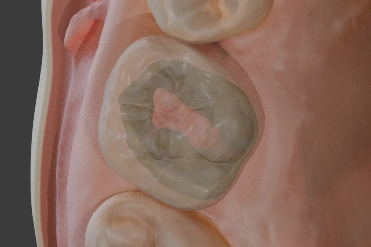 We're about to begin one of the most critical and nerve-wracking parts of root canal treatment—making the penetration cut to reach the pulp chamber. At this stage, you'll need to decide where to start, in what direction to proceed, and how deep to go. Remember not to invade the marginal ridge or the oblique ridge. Let's start at the central pit for this simulation.