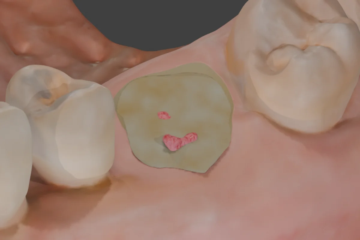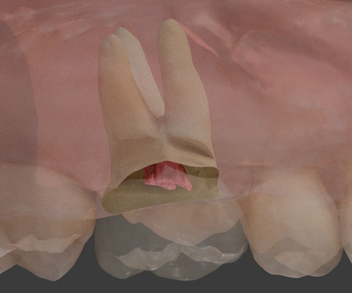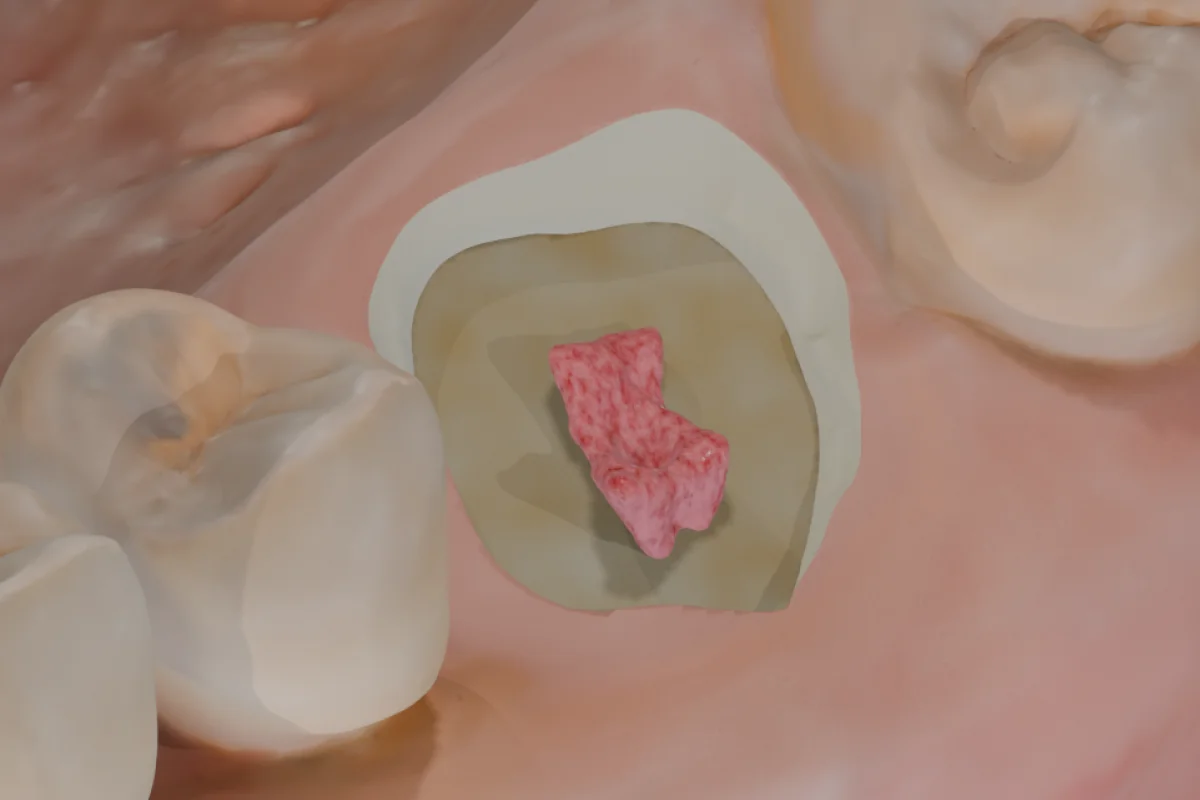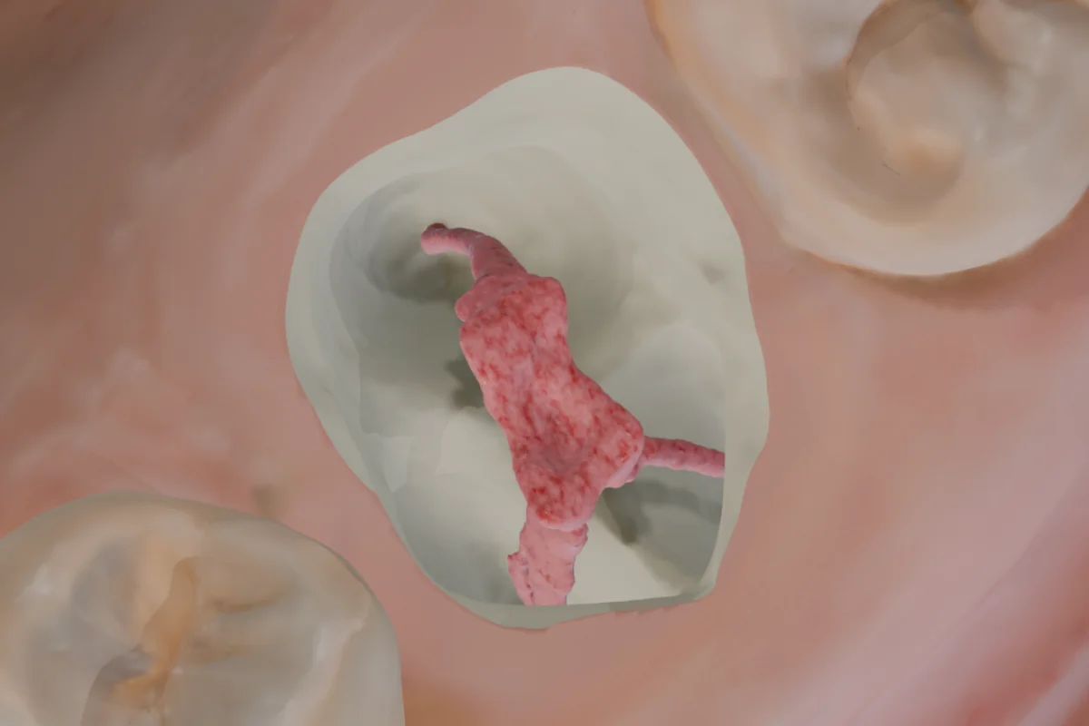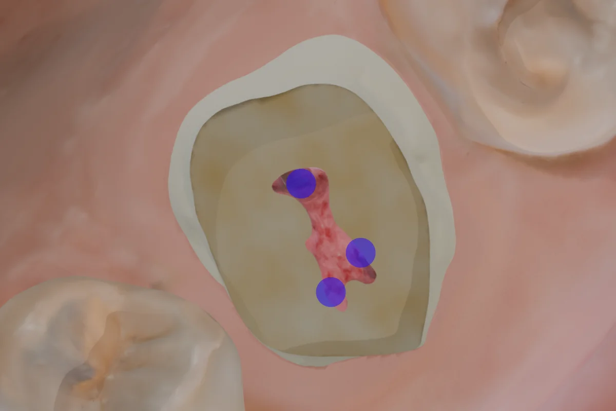 We’ve used a #8 bur to make the penetration cut. You've now reached the pulp chamber and can observe the pulpal floor map.