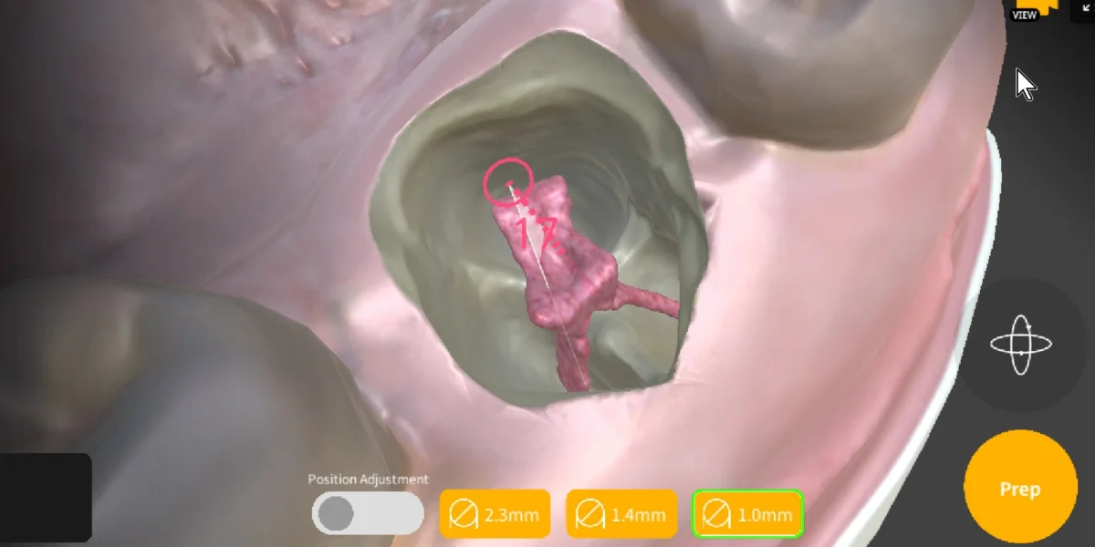Now, let's prepare the access cavity according to the direction you've chosen. When you press the Prep button, you'll hear a sound and feel a vibration indicating the formation of the cavity. As you approach the pulp chamber, you’ll experience a "sinking sensation" through the bur's speed, sound, and vibration.